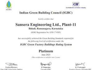 - Awarded the IGBC Green Factory Building Platinum Certification Award to Plant 11 From Confederation Of Indian Industry (CII)